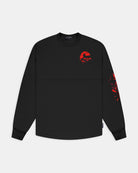 DETAILS: This Spirit Jersey® features screen-printed artwork with puff paint details. Trademarked garment design: Dropped shoulders, long cuffed sleeves, banded neckline, and a curved hem. Flag label at side.